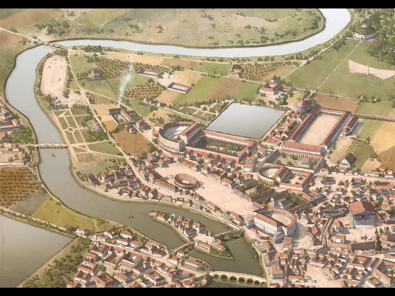 - Ricostruzione della Basilica di Nettuno, edificata dopo la Battaglia di Azio