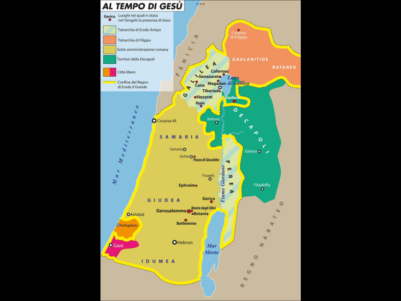 - Alla morte di Erode il Grande (4 a.C.) la Giudea venne divisa fra i suoi 3 figli: Tetrarchia di Filippo, Tetrarchia di Erode Antipa e Etnarchia di Archelao (deposto nel 6 d.C. E affidato a un prefetto) e Tetrarchia